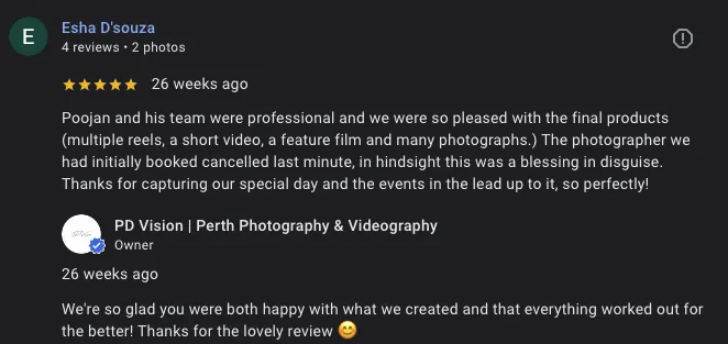 I ensure we create and capture the magic from your wedding day because we know how important it is to you and want it to be something you can look back on years down the track, leaving you in tears. It’s happening once (hopefully), so you want to make sure you pick the team that knows what they’re doing, truly cares and can bring out your best on camera.