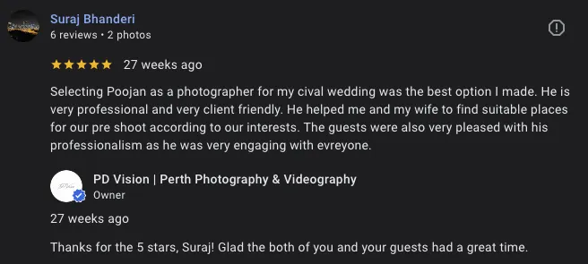 We capture and tell each story uniquely because each couple is very unique. We aim for a mix of both candid and posed using ambient and artificial lighting for creativity. Some people confuse posed shots with uncomfortable and unnatural posing. This is a misconception, as posing is absolutely required; we can’t just shoot candids. We talk you through the posing and gauge what does and doesn’t work with you, making sure you’re comfortable along the way.