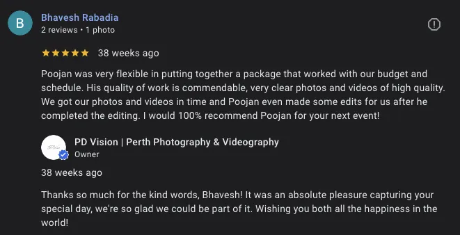 We’ve shot many cultural weddings. Some include: Hindu, Chinese, Punjabi, Islamic, Telugu, Tamil and more.